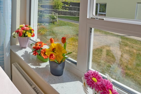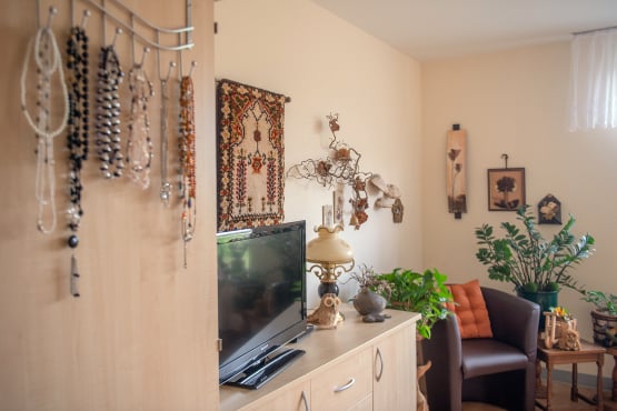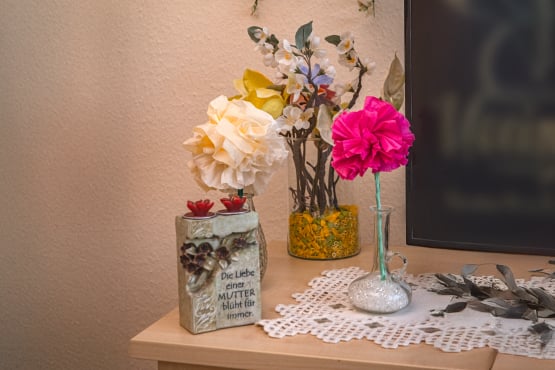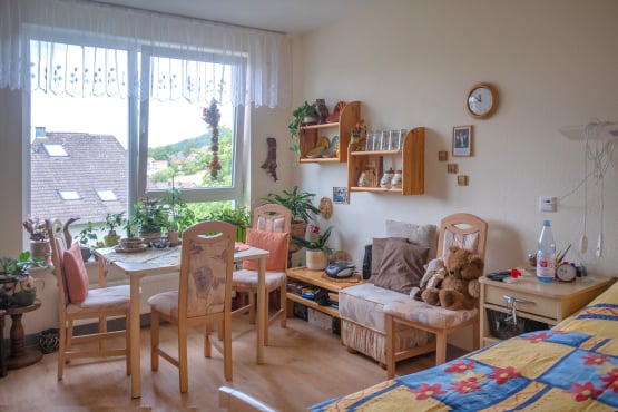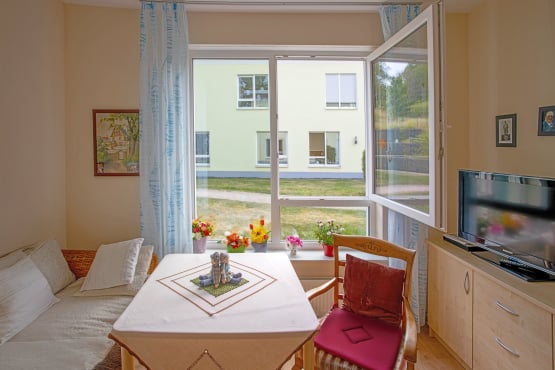 Um das Leben so komfortabel wie möglich zu gestalten, bieten wir ausschließlich Einzelzimmer an. Jedes Apartment verfügt über ein eigenes Badezimmer und eine Diele sowie großräumige Fenster. Die Grundausstattung verfügt über Pflegebett, Schränke, Garderobe und Tisch. Gerne können diese durch mitgebrachte Möbel ergänzt oder ausgetauscht werden. Sie sollen Ihre vier Wände individuell gestalten und sich darin wohlfühlen!