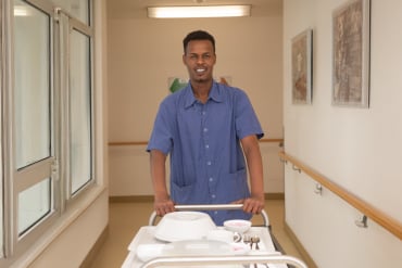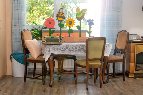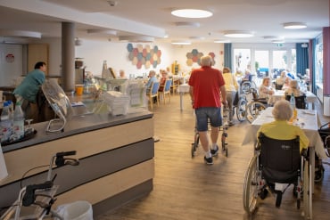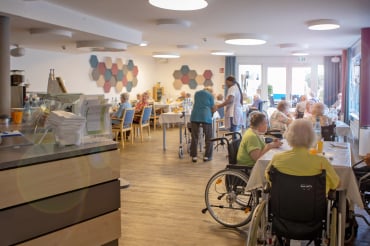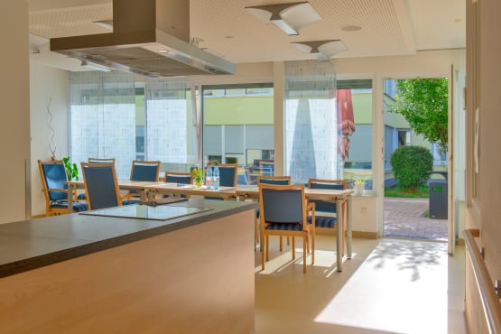 Bewohner*innen mit Unterstützungsbedarf haben die Möglichkeit, hier ihre Mahlzeiten einzunehmen.