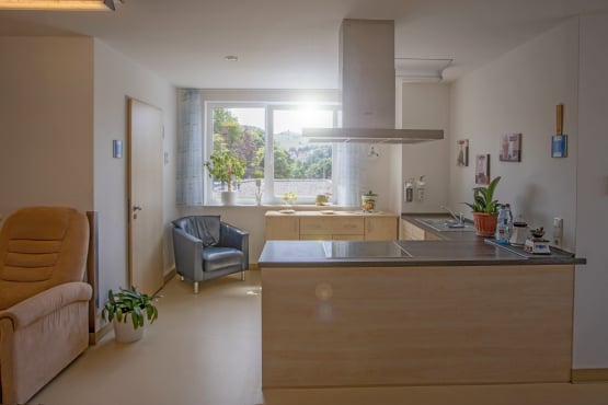Für unsere Bewohner*innen stehen auf zwei Etagen zwei Wohnbereiche, aufgeteilt in sechs Wohngruppen, zur Verfügung. Auf jeder Etage gibt es gemütliche Gemeinschaftsbereiche mit aktiver Küche, die den Austausch und die soziale Interaktion zwischen den Hausbewohner*innen fördern.